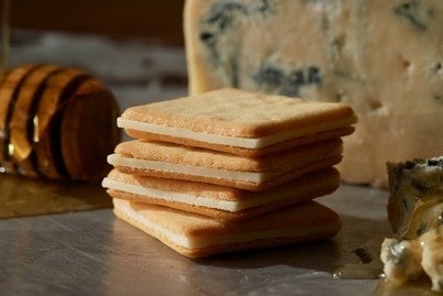 北海道産牛乳とフランス産ゲランドの塩を使った生地に、カマンベールチーズのチョコプレートをサンドしたクッキーです。