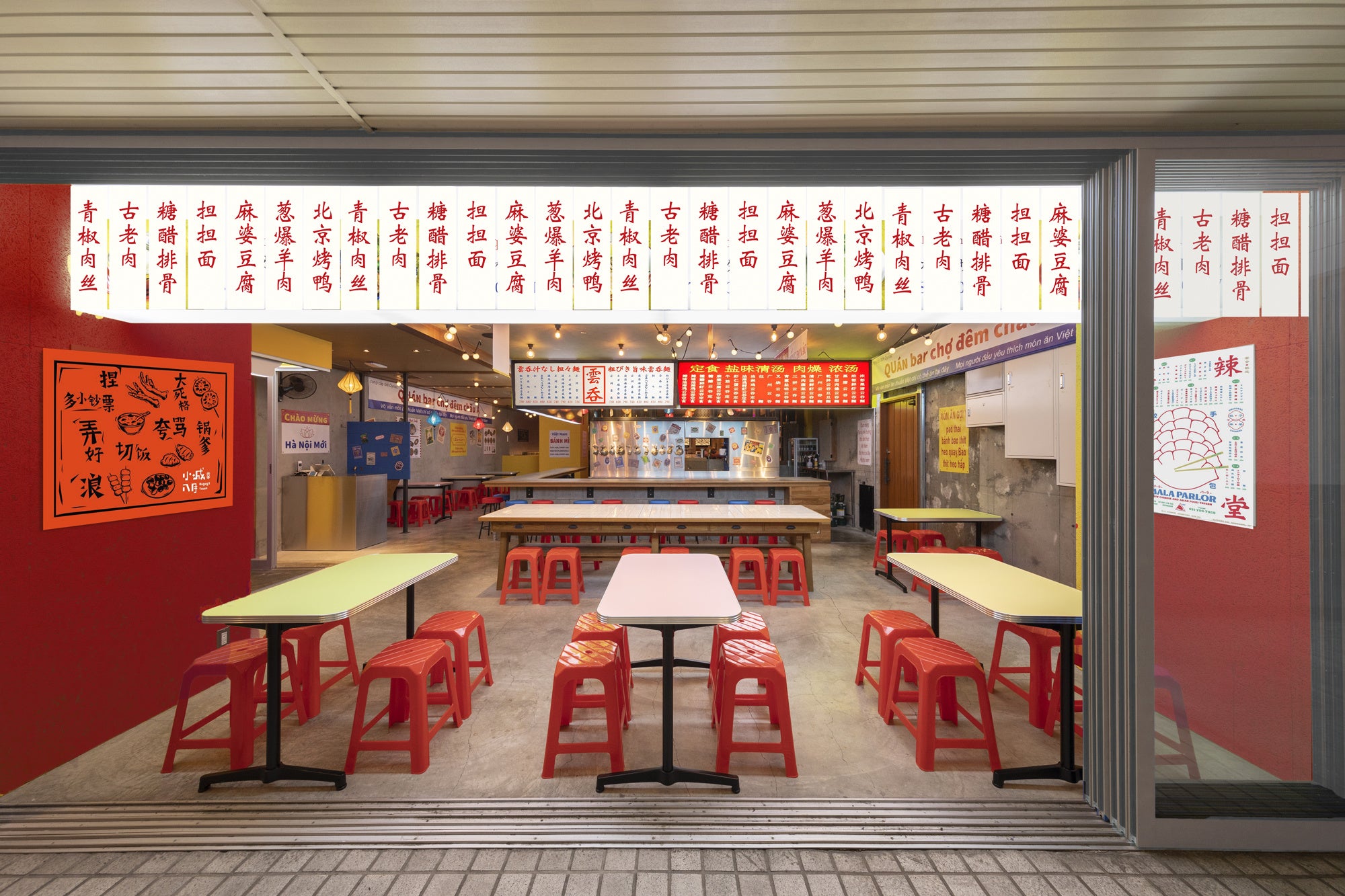 185席ある広い店内。中華屋台をイメージしたカジュアルなエリアは仕事帰りに親しい仲間と少⼈数で。60名様までの⼤型宴会やイベントにも対応できるダイニングスペースに10名前後のプライベートな空間の半個室など、様々な飲⾷シーンでご利⽤いただける環境をご用意しております。