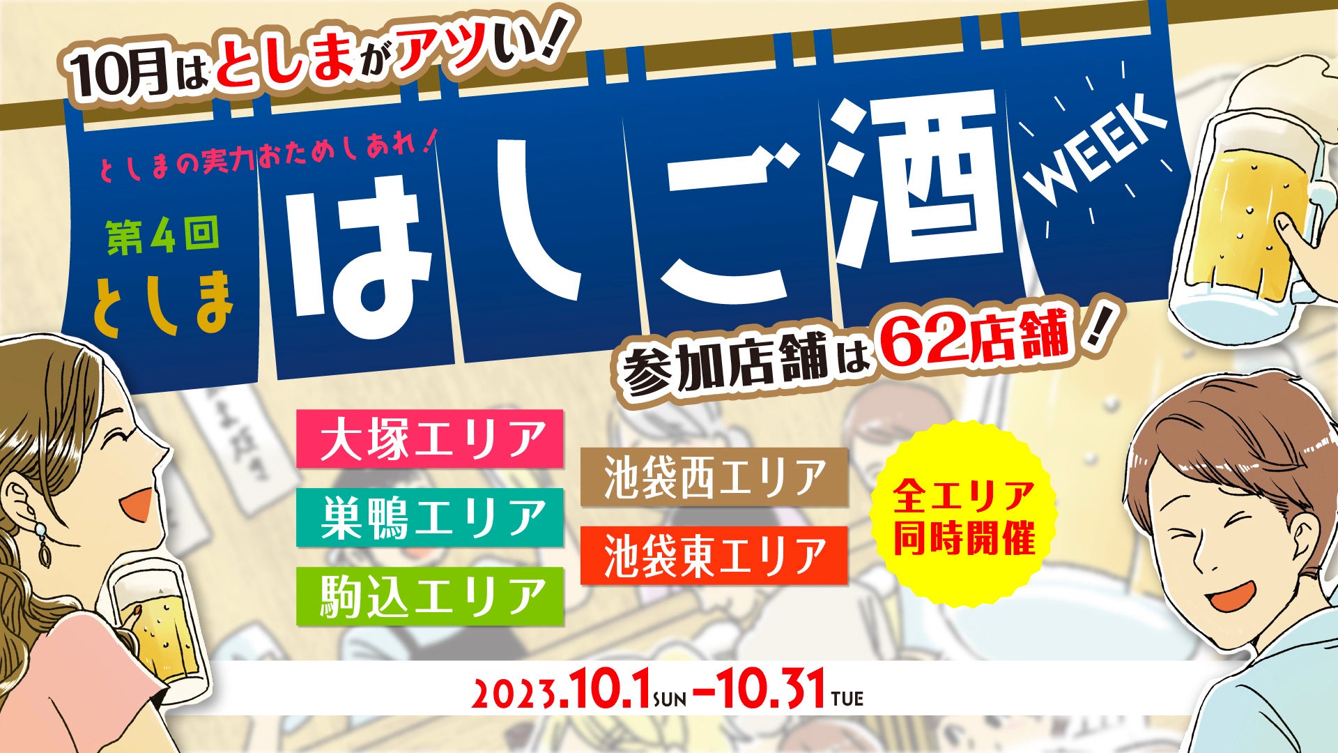 池袋・大塚・巣鴨で飲みながら街歩き!豊島区の居酒屋62店舗でおトクに飲める「第4回としまはしご酒WEEK」が10月に開催!