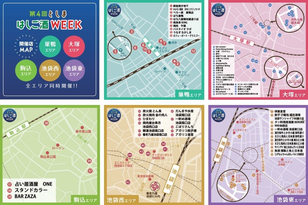 ・会場:大塚駅・新大塚駅・巣鴨駅・池袋駅・駒込駅の周辺の62店舗