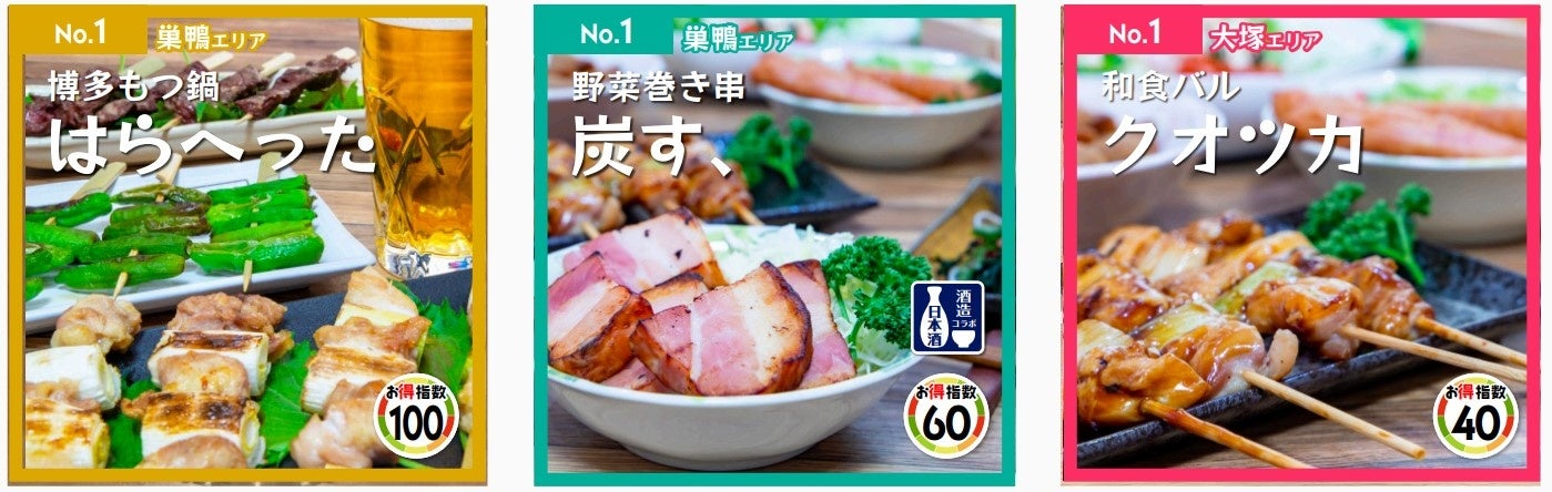 はしご酒チケットを購入すると、豊島区の62店舗の飲食店と提携して各店舗のおすすめメニュー(はしご酒メニュー/一律1,000円)を注文することができます。はしご酒メニューには、店舗ごとに通常提供と比較した『お得指数』が設定してあり、参加者が店舗を選ぶ指標になっております。お得指数に関しては、各SNSにてご確認いただけます。