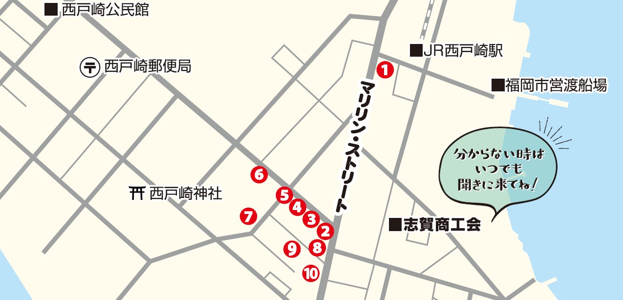 今回は海の中道海浜公園から志賀島へ向かうルートを一部変更しており、SAITOZAKI アメリ化再現プロジェクトによるシャッターアートが並ぶルートを通ります。各店舗の閉店後もしくは店休日にレアなアートを見ることが可能になっております。