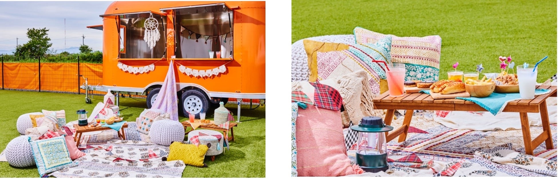 女子会専用フィールド内には、専用キャンピングカーを設置。くつろぎスペースとして装飾された車内でゆっくり過ごしたり、芝生の上で女子会BBQを楽しむこともできます。また、スイーツやドリンク付きの昼間限定ピクニックプランでの短時間利用も可能。