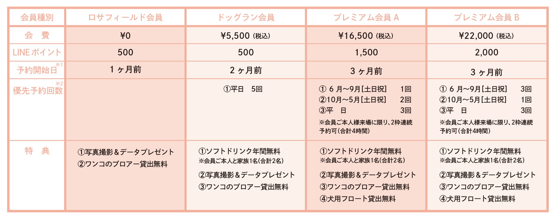 会員ランクにより、先行予約の日時や予約回数、その他特典内容が異なります。