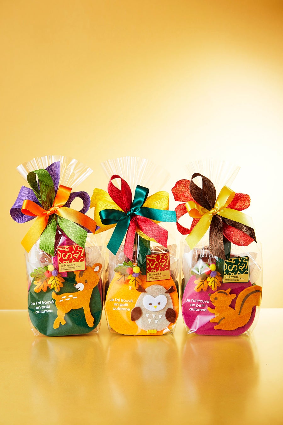 あたたかみのあるフェルト生地に、とびきりキュートな動物たちをあしらったミニバッグの登場です。動物たちの表情はみんな楽しげで、実りの秋に喜んでいるかのよう。取手とサイドの配色や、カラフルな落ち葉もワンポイントです。ビビッドな色合いでかわいらしいフクロウと、シックなテイストのこじか、りすからお好みでお選びください。並べておいてもかわいいので、セットで贈るのもおすすめです。