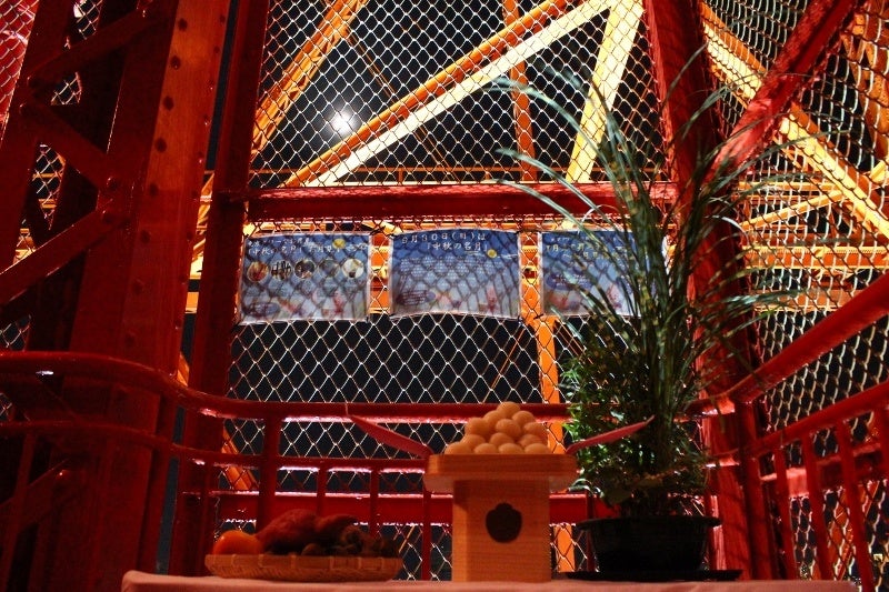 外階段途中355段目付近の踊り場に設置する「お団子」や「ススキ」のお供え物も、お月見気分を盛り上げます。