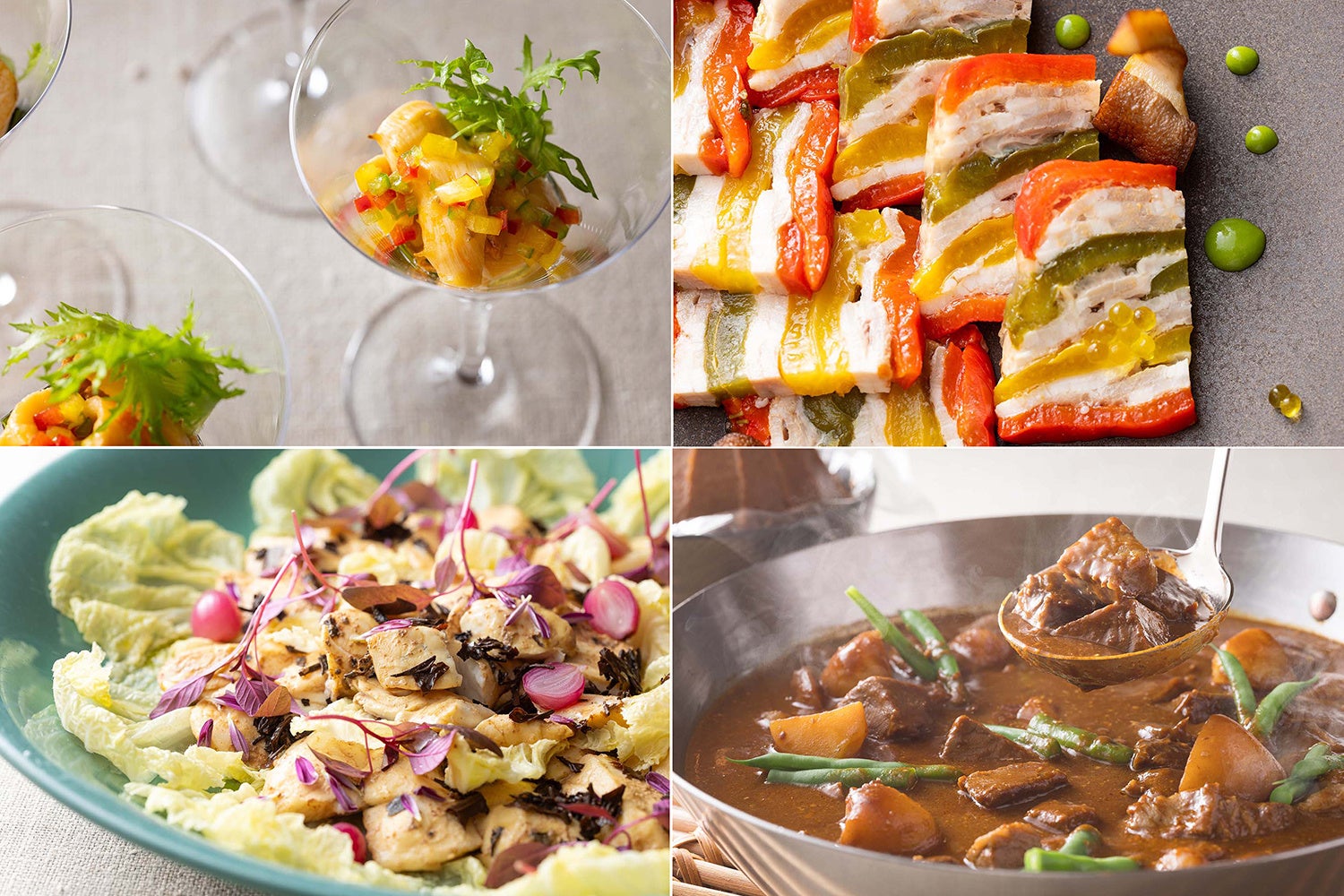 「伊達の純粋赤豚と焼きパプリカのプレッセ もっこりニラのソース」は、豊かな風味と脂の旨味が特長の柔らかな豚肉を、存分に味わっていただける冷製料理。登米市産のニラを用いたソースとともにお楽しみください。また、大豆のコクと味わいを活かした濃厚な「牛肉の柔らか仙台味噌煮込み」は、寒くなり始めるこの時季にぴったりの一品です。このほか、香りと食感がたまらない「せりとポークの天ぷら」をはじめ、「荏胡麻豚のロースト」や「蔵王クリームチーズのフォカッチャサンド」などの“こだわり食材”が登場!ホテル総料理長・丸山がプロデュースする数々のメニューをご堪能ください。