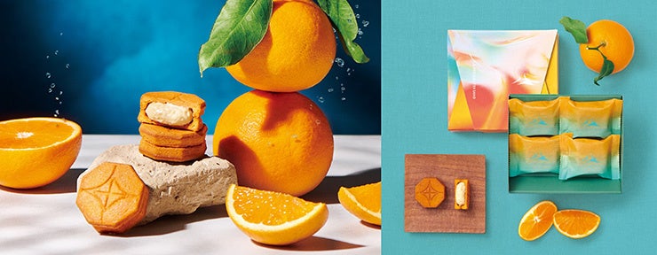 温州みかんとオレンジをかけ合わせた香り高い「清見みかん」の美味しさを凝縮させたジャムに仕立てて、なめらかなくちどけのバタークリームにたっぷりと混ぜ込み、上品な甘みと香り、米粉クッキーの香ばしさを味わえる一品に仕立てました。