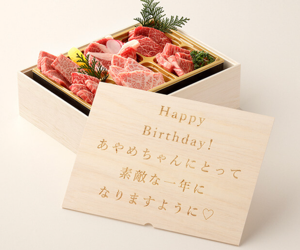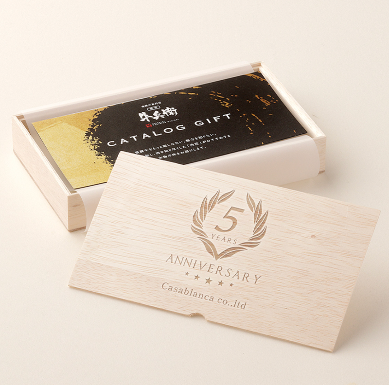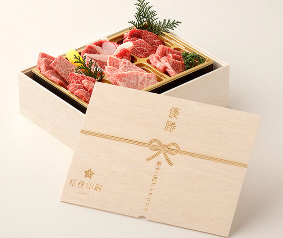 周年記念、景品、キャンペーン販促物や福利厚生として大事な節目・イベントに選ばれております。黒毛和牛の肉ギフトを木箱に自由な文字、デザインを入れて、世界に一つだけのオリジナル記念品を製作いたします。企業名やショップ名、企業・イベントロゴ、キャラクターのイラスト等を入れることも可能です。