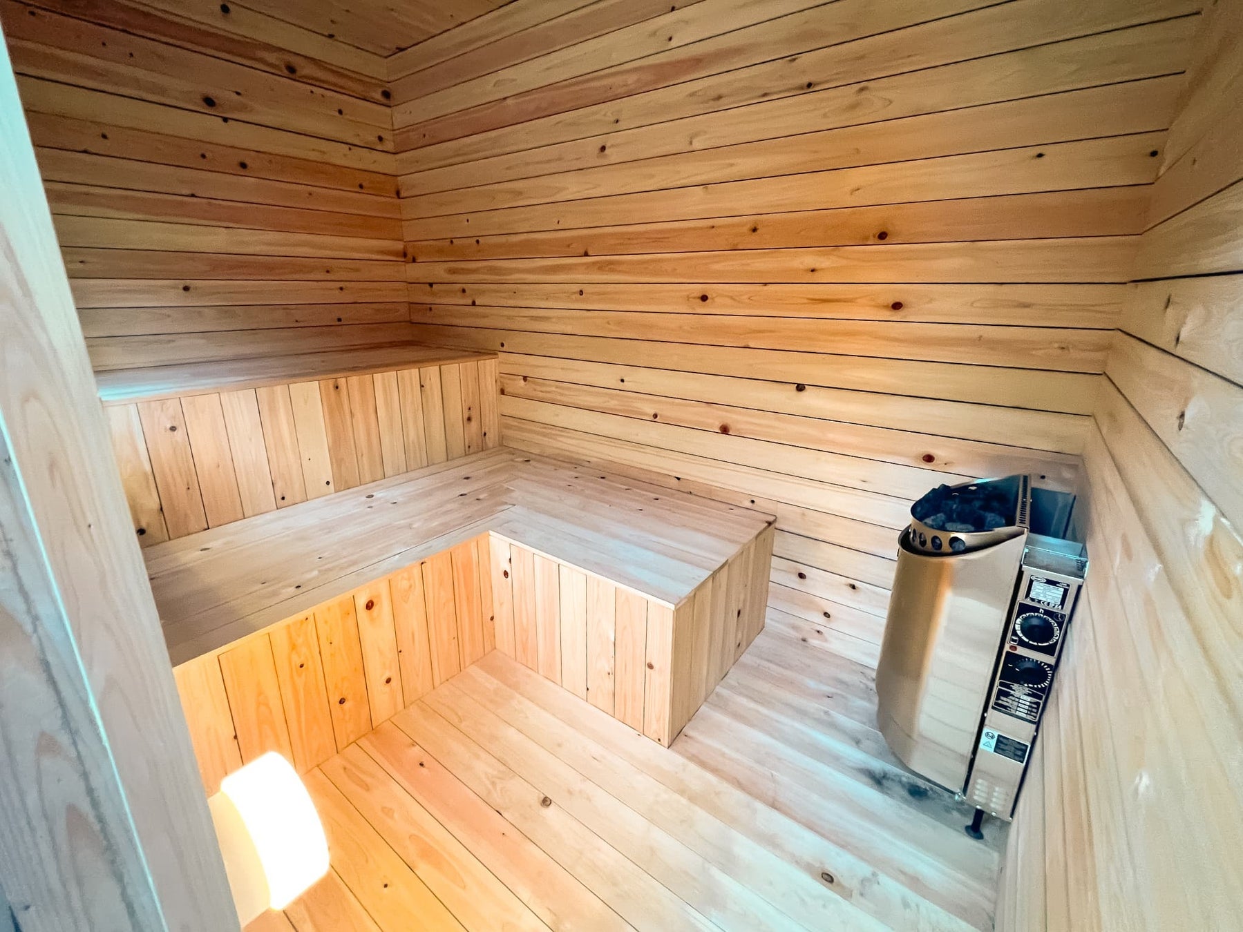サウナ小屋は檜で作られており、木々の恵みを感じさせる香りを奏で、80℃〜110℃までお好きな温度で設定することが可能です。もちろん、ロウリュウもお楽しみいただけます。