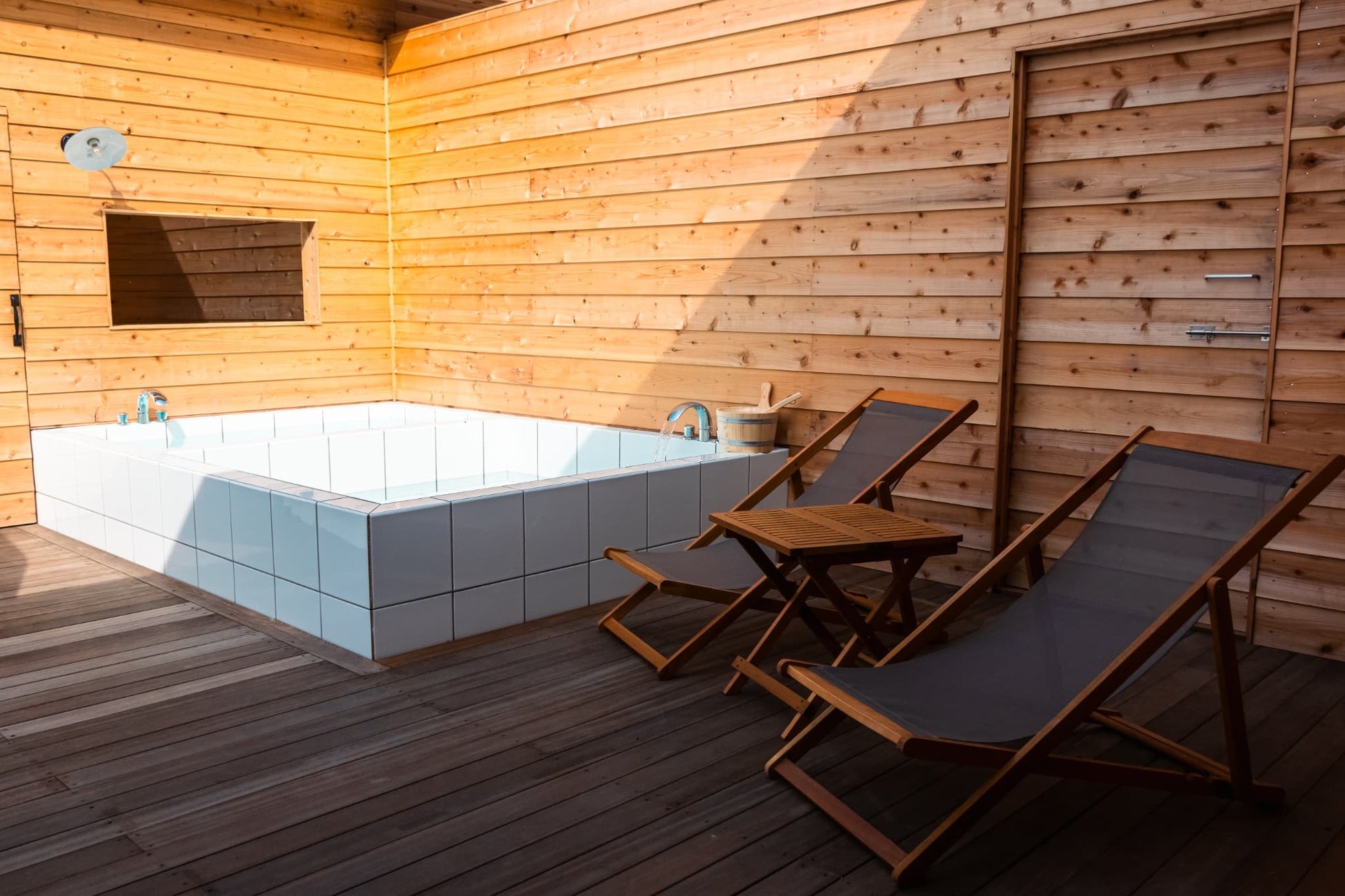 さらにサウナにはかかせない「外気浴スペース」いわゆる「ととのいスペース」を設けており、リクライニングチェアを完備。
