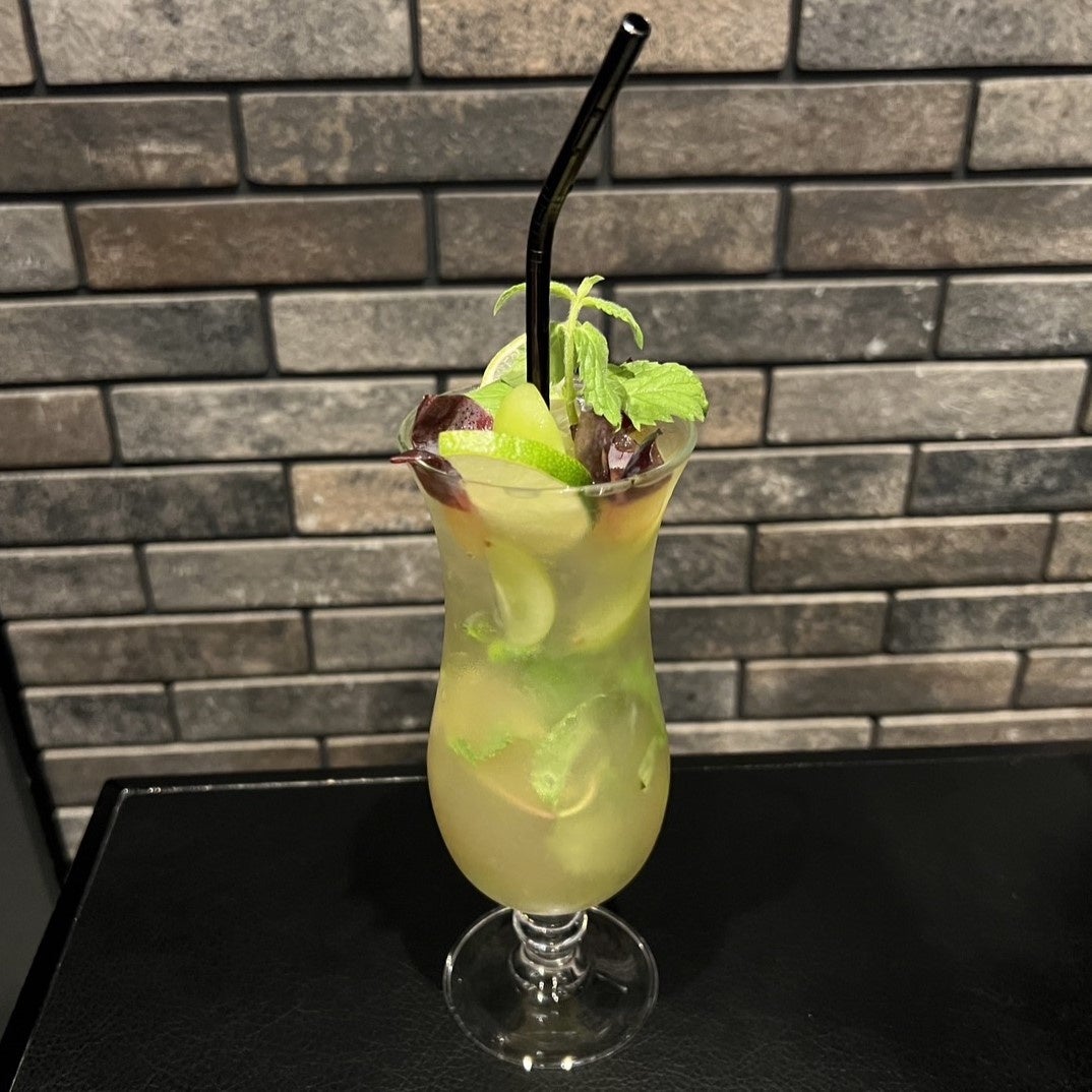 マスカットとピオーネを贅沢に使用したモヒート風モクテル。見た目も味も初秋らしい爽やかな一品に仕上がりました☆