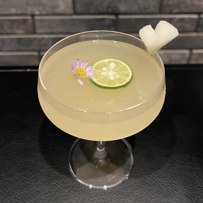 和梨・すだち・生姜のシロップを使った和風のモクテル。果実感をまるっと感じつつもスッキリとした味わいが特徴です♡