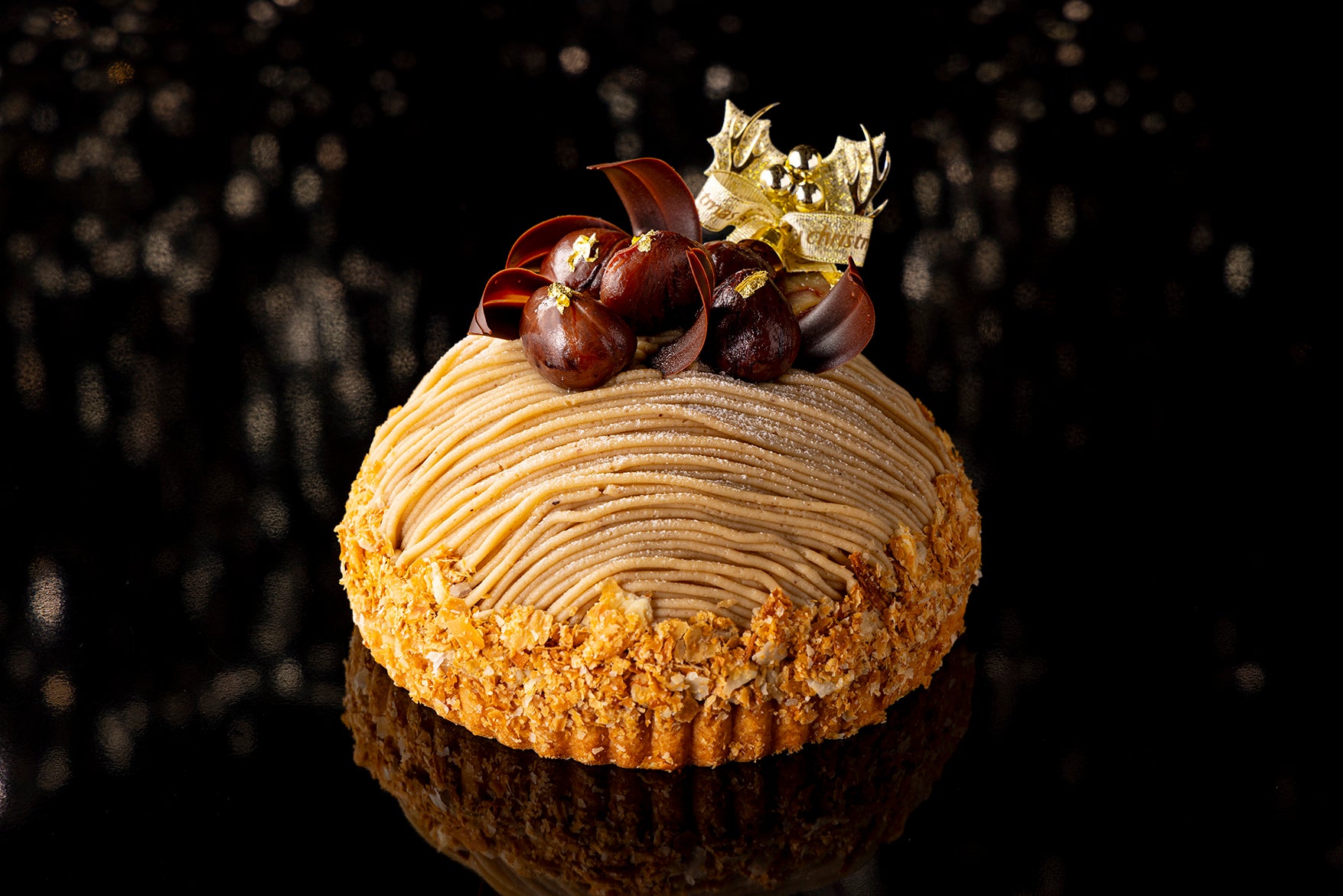 カスタードクリームとたっぷりの生クリームを、ほっくりして上品な甘さの熊本県阿蘇産和栗を使用したモンブランクリームで贅沢に包みました。全粒粉入りの風味豊かなタルト生地とサクサクのパイがアクセント。トッピングに渋皮栗の甘露煮とチョコレートを飾り仕上げました。