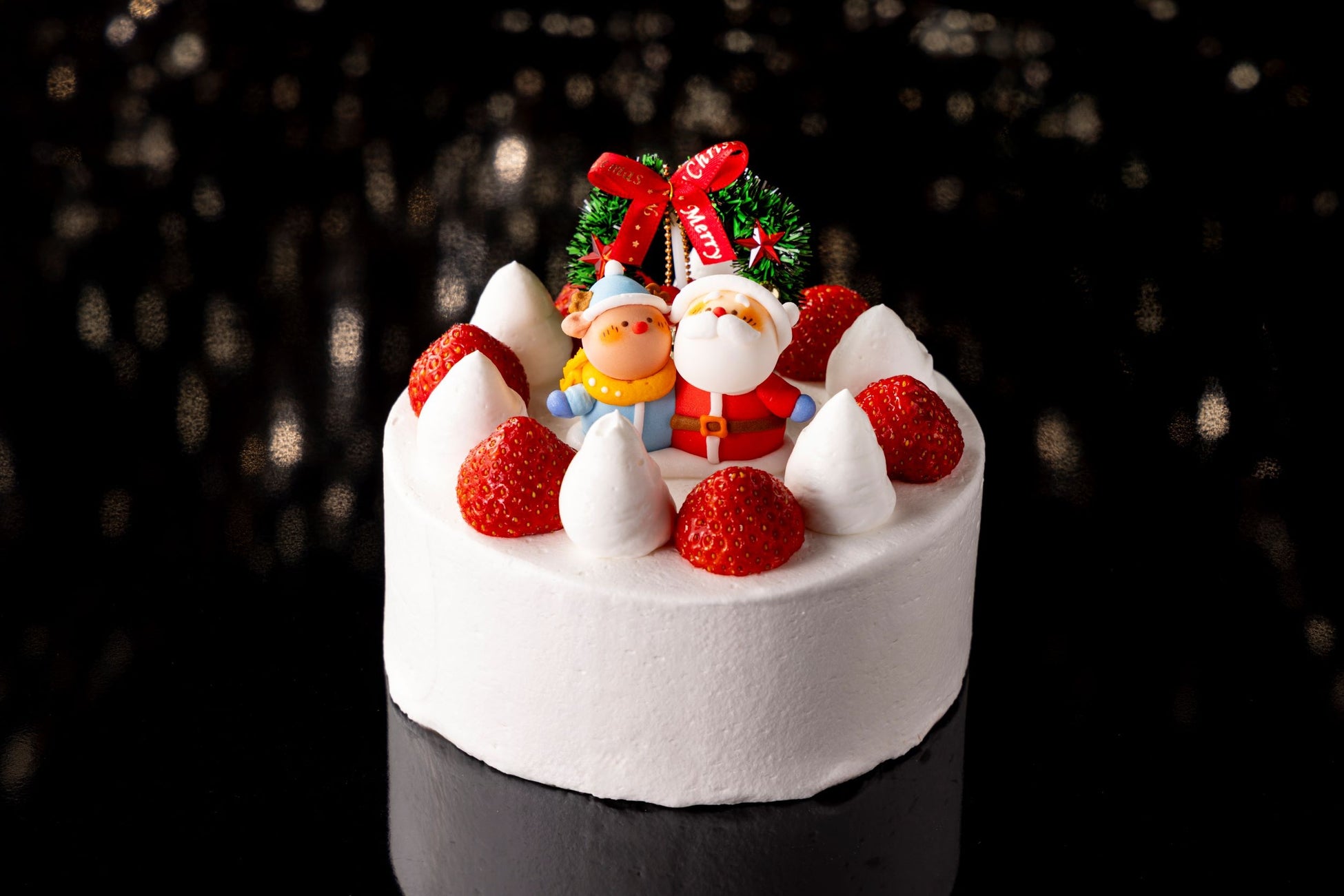 毎年高い人気のクリスマスケーキ。しっとりふわふわのスポンジに生クリームと丸ごと苺をふんだんに敷きつめました。サンタとトナカイの仲良しオーナメントがクリスマスパーティーを盛り上げます。