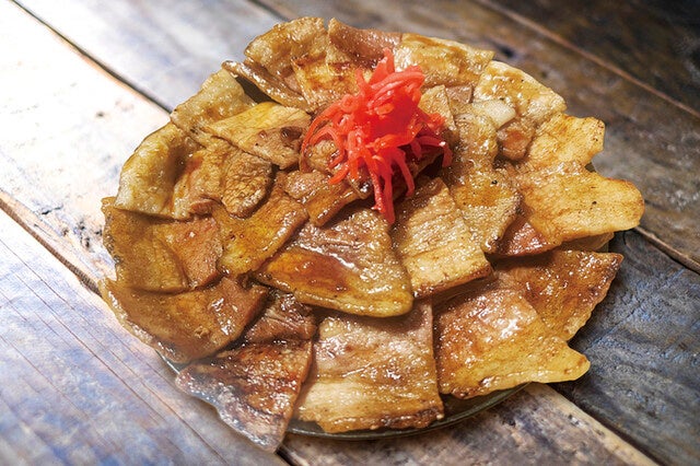 道南で焼鳥と言えば「豚精肉」。北海道の道南エリアでは、一般的に「やきとり」というと豚肉のことを指します。森町しげぞうではこの豚肉を自家製秘伝のタレに絡め、丁寧に焼き上げてご飯の上に敷き詰めます。
