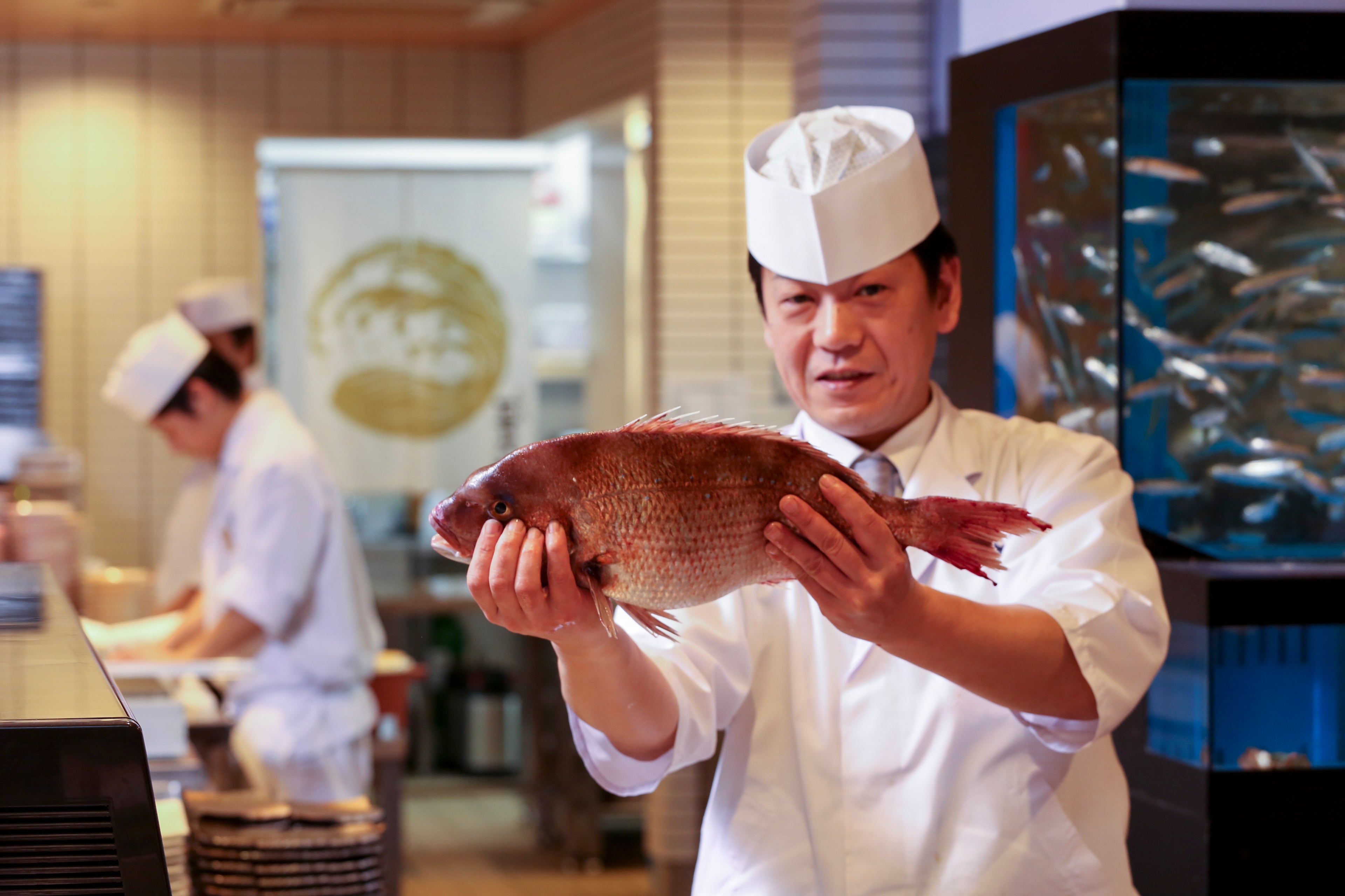 チェーン店でありながら板前のいる廻転寿司にぎり長次郎。魚を〆て、捌いて、にぎる。板前の仕事ぶりを、ぜひその目でお確かめください。