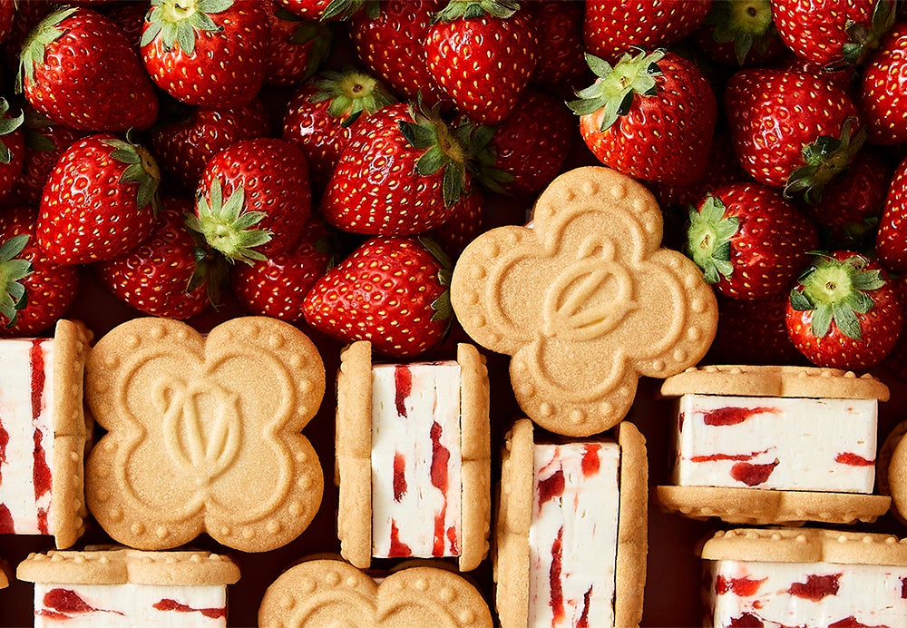 真っ赤な果肉と香り高い甘さが特徴の“イタリア産サブリナ苺”を、とろっと煮詰めた苺コンフィチュール。練乳ミルクのコクをなめらかに練り上げたホワイトショコラ。ふたつが柔らかなまま組み合わさった“とろけるダブルメルト製法”が美味しさの決め手です。お口の中で苺とミルクが同時にとろっと溢れる至福の美味しさを、しっとりしたクッキーでサンドしました。