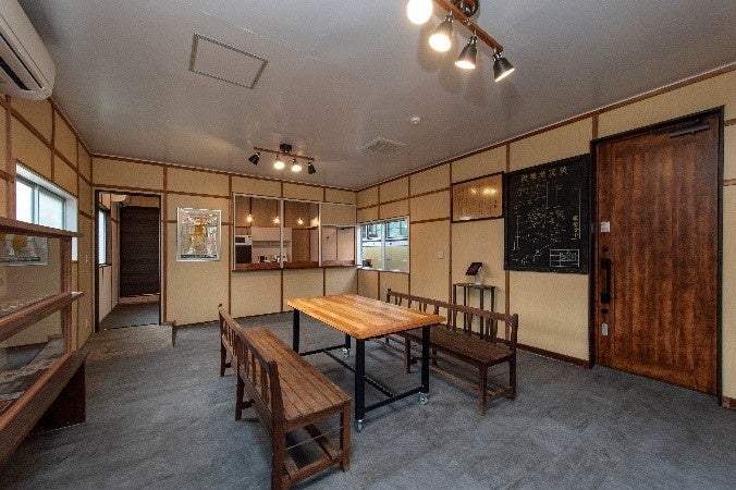待合室だった場所は飲食が可能なダイニングルームとなります。内装の見た目をほとんど変えずに補修し、バスの待ち時間に腰かけていた木のベンチや図書室のように本を自由に手に取れる本棚も復元します。案内所のカウンター、事務室だった場所は調理器具を備え付けたキッチンとなり、当時の名残ある空間で調理をお楽しみいただけます。また、食材は事前予約いただくことで、地域の民宿や漁協の協力のもと海の幸を盛り込んだセットをご用意します。さらに、かつて倉庫等として使用されていた部屋は浴室、トイレ、洗面などの設備とベッドルームにリノベーションします。