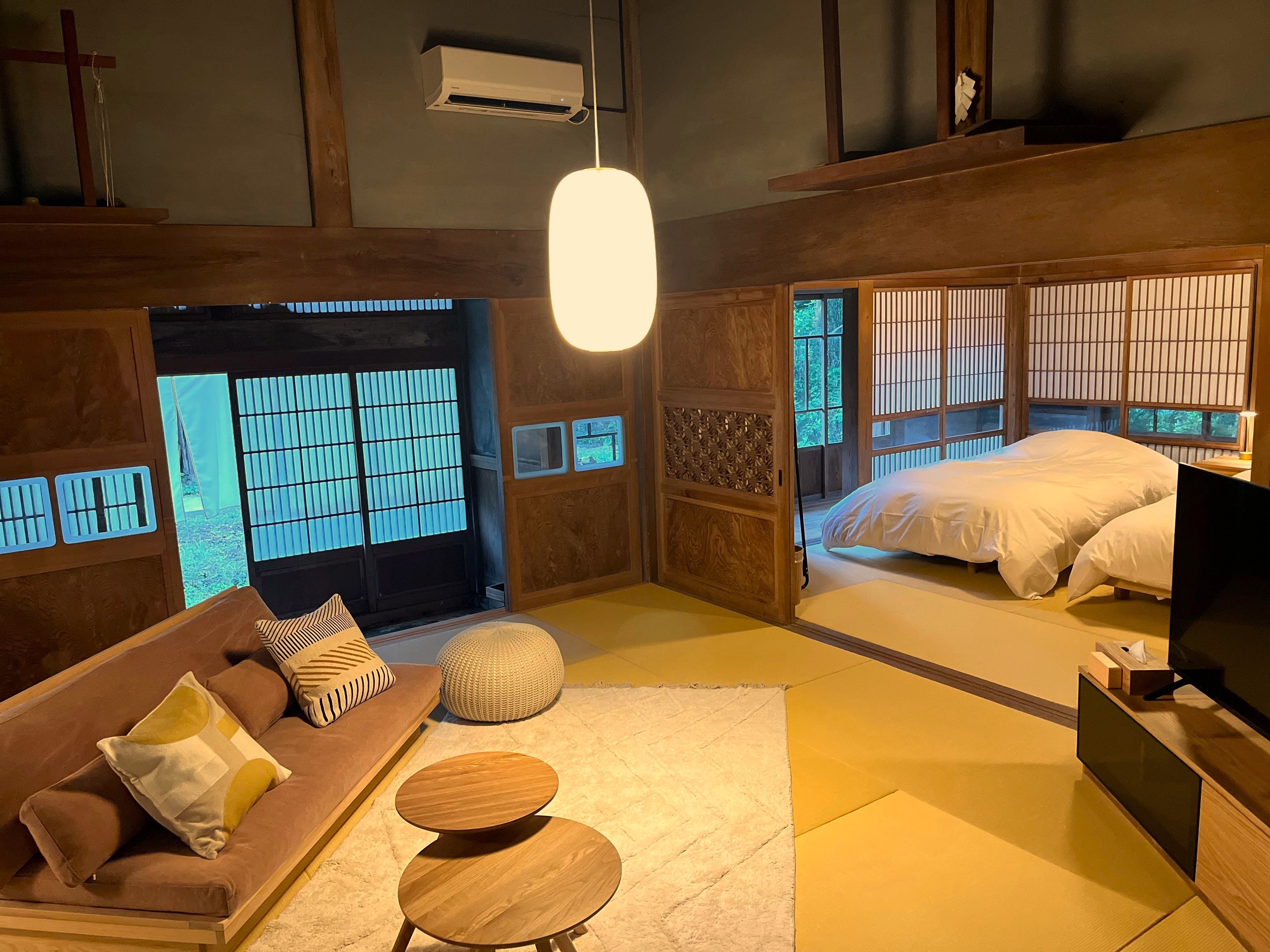 歴史を感じる建物に、洗練された家具でお過ごしいただく非日常の体験。「大井倉宿せいざん」ならではのご宿泊を存分にお楽しみください。