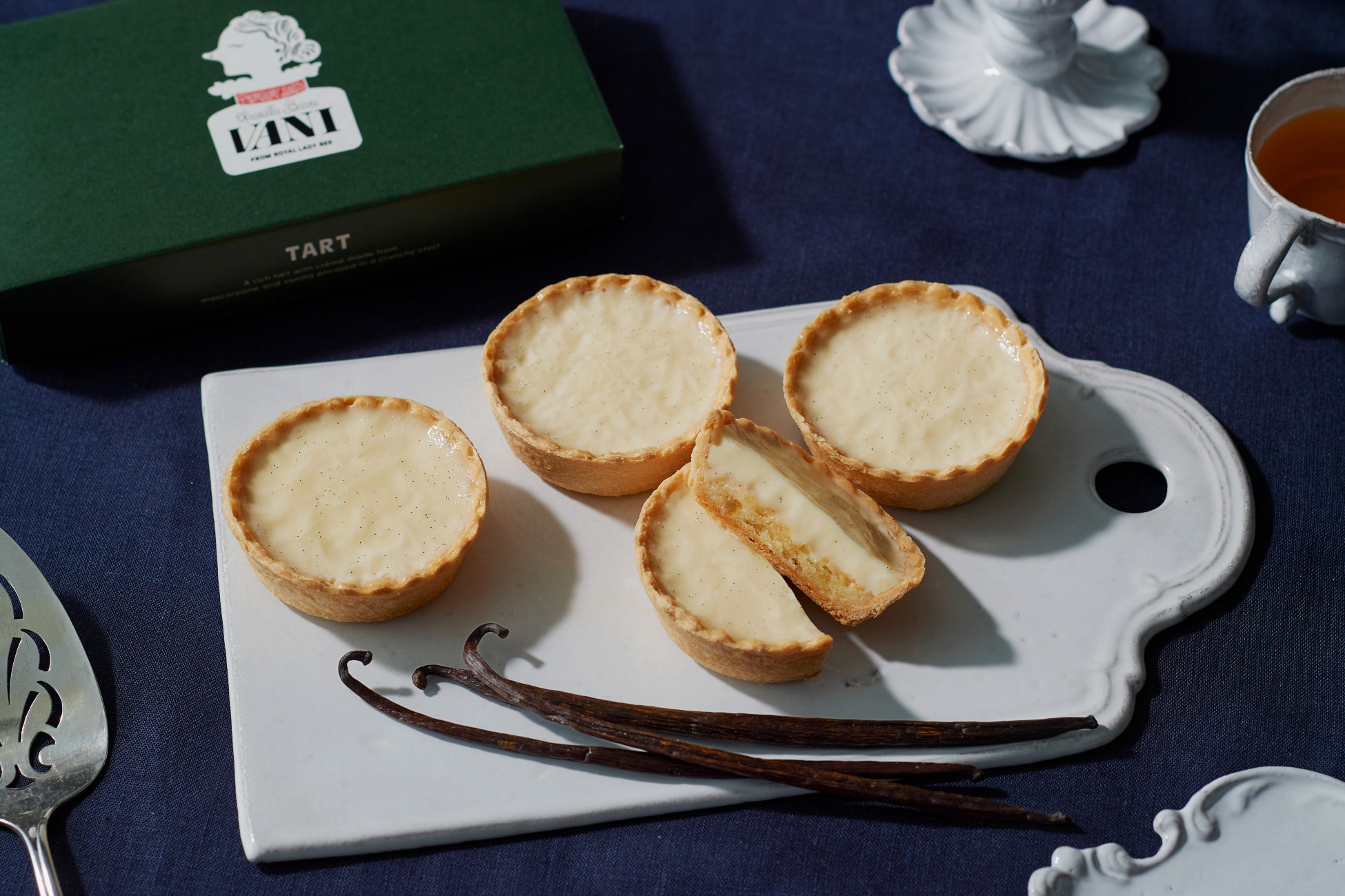 マスカルポーネチーズにバニラを加えた、とろりとなめらかなバニラクレームを楽しむタルトです。濃厚なダマンド生地にはレモンピールで爽やかな香りのアクセントを。