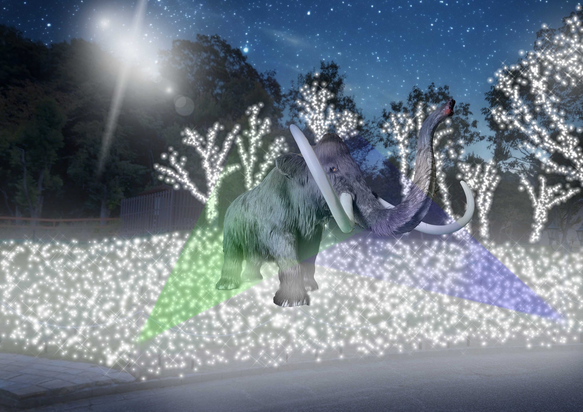 イルミネーションで氷河期の世界を表現。