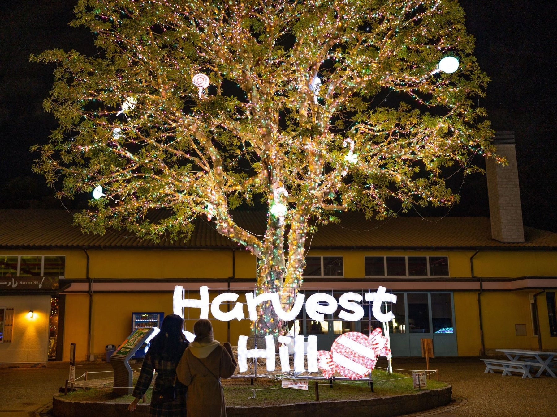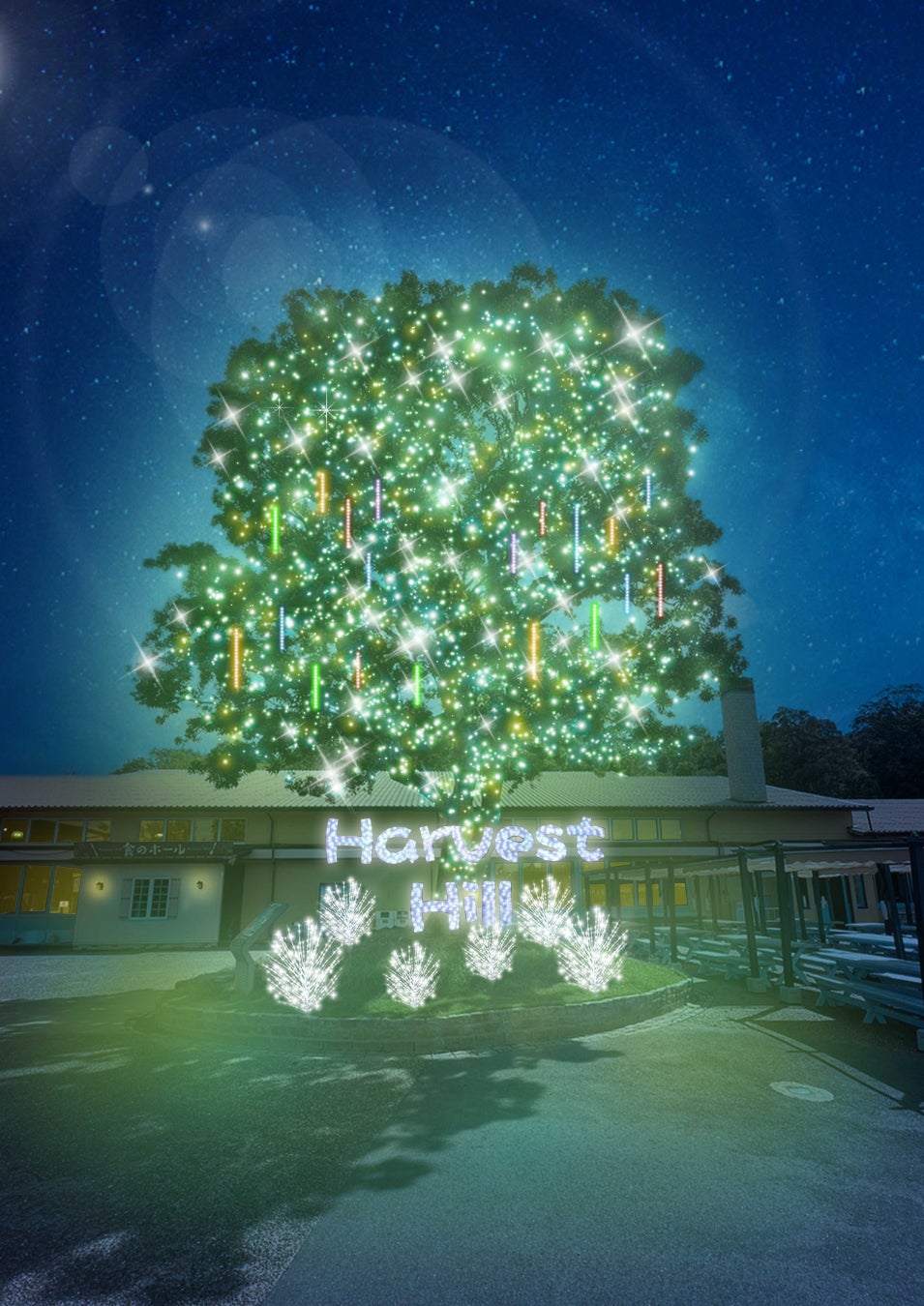 巨大なヤマモモの木のイルミネーション。