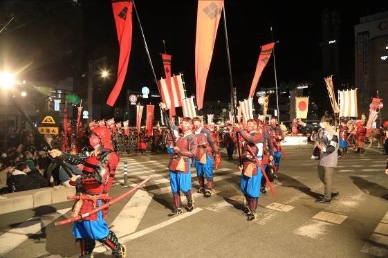 武将隊は、舞鶴城公園を出発し、甲府駅前、平和通りを練り歩き、舞鶴城公園に戻り帰陣式を行います。