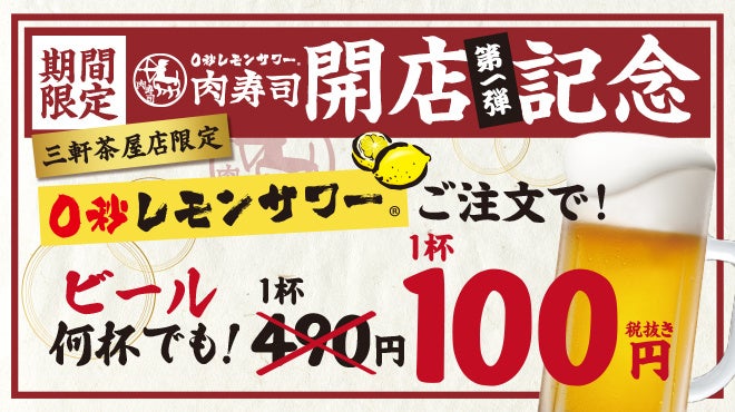- 東京初出店!『0秒レモンサワー 三軒茶屋 肉寿司』が2023年10月27日(金)グランドオープン!!!