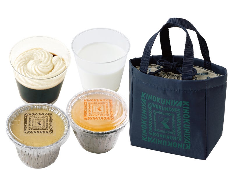 セット内容:紀ノ国屋の珈琲ゼリー、カスタードプリン、とろける杏仁プリン、国産かぼちゃのプリン、ミニ保冷バッグ