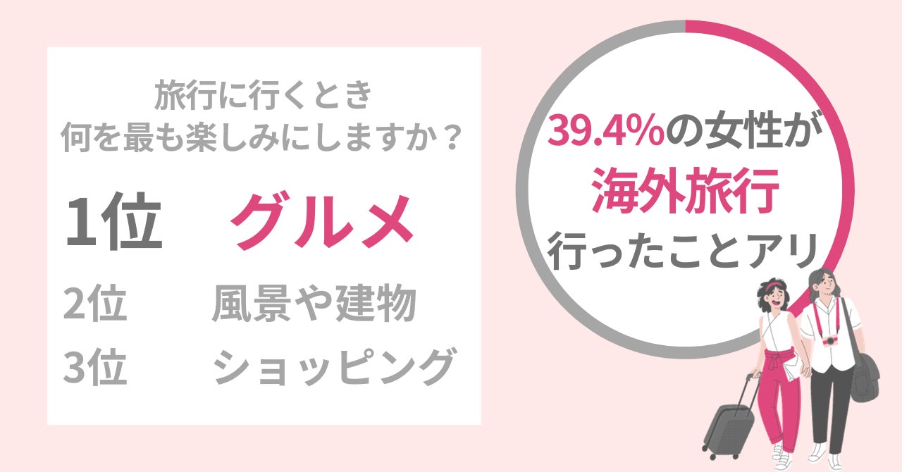 ・51%の女性が旅行で最も楽しみにすることはグルメ
