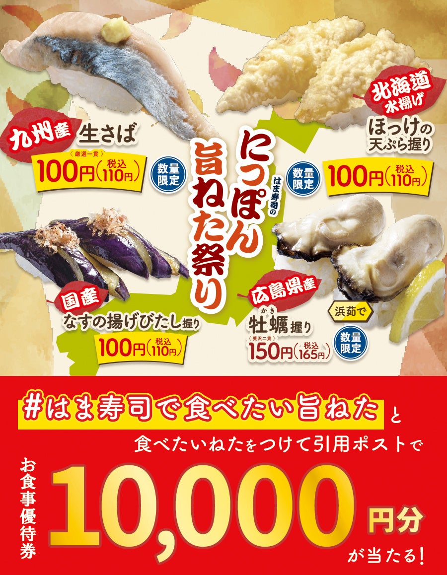 ぜひこの機会に、お近くのはま寿司で「はま寿司のにっぽん旨ねた祭り」をお楽しみください。