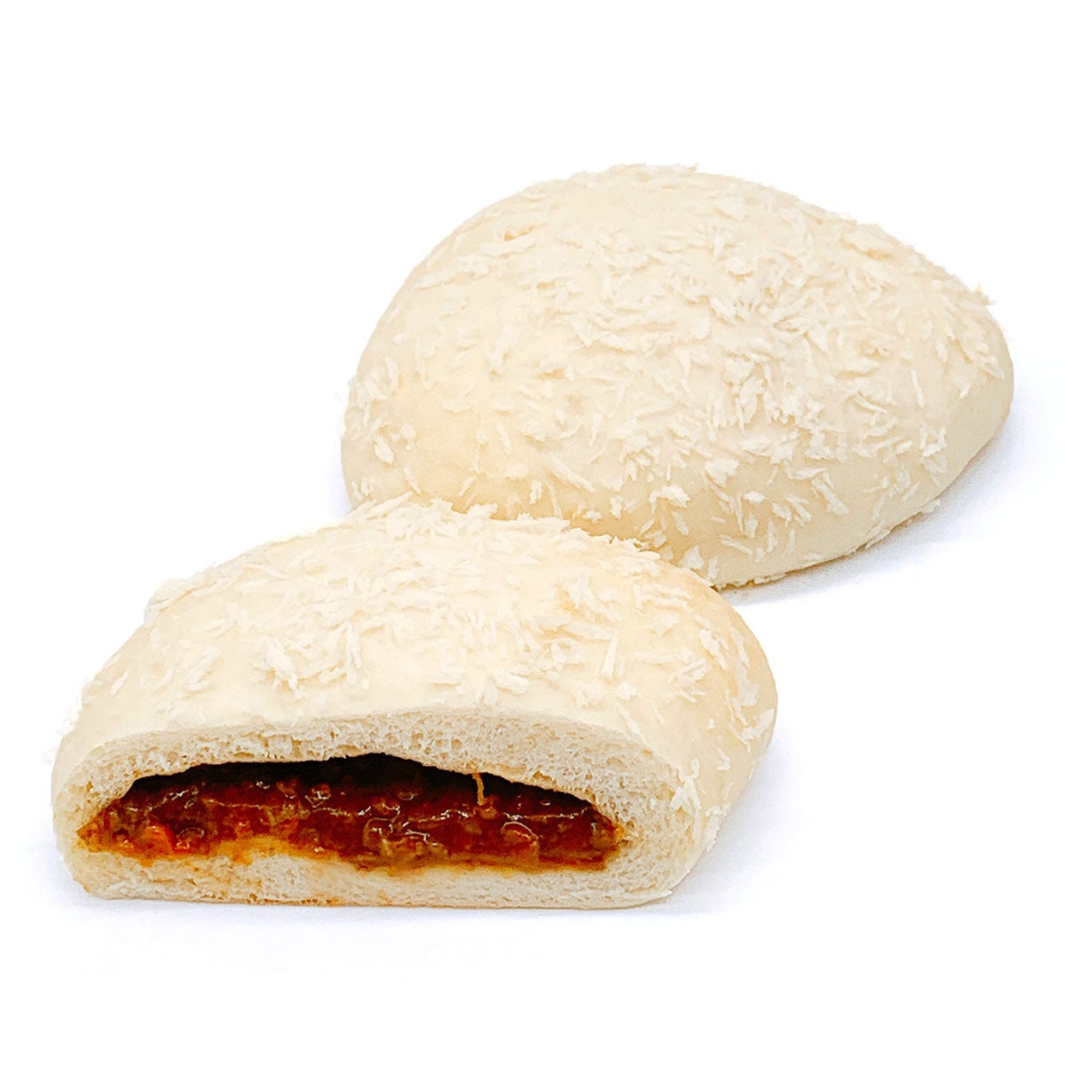 真っ白な生地ともちもちとした食感がナンを感じさせます。カレーフィリングは温めることでさらに、とろけて違った食感が楽しめます。