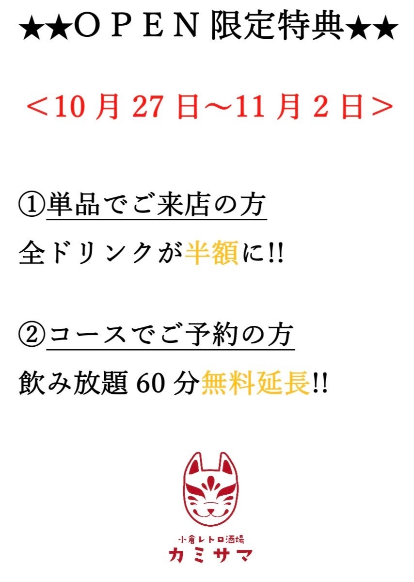 北九州小倉魚町「小倉レトロ酒場 カミサマ」10月27日 NEW OPEN!!!!
