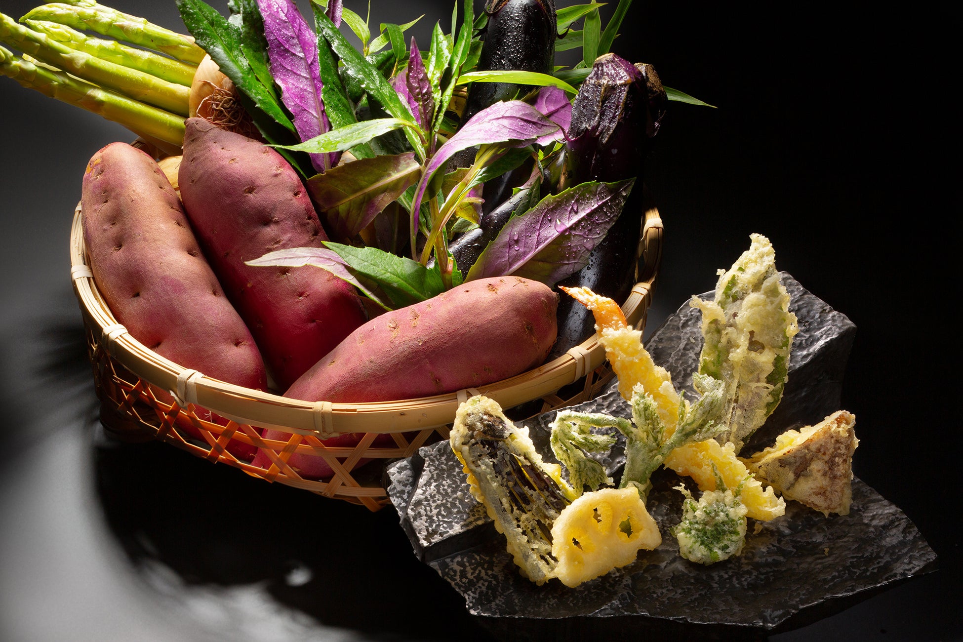 - 揚物:海老と加賀野菜の天婦羅