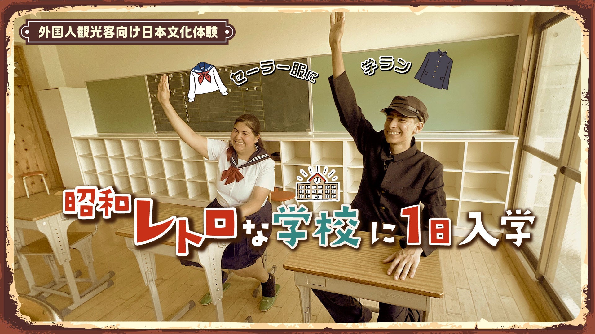 とある日本の田舎町、時代は昭和・・・。自然に囲まれた田園風景の中にたたずむ学校に1日入学。実際に“担任の先生”が教室で授業を行います。体験者は学ラン・セーラー服を着用。入学式から始まり、朝のホームルーム、日直、書道や歴史の授業、給食、運動会、最後は卒業式で卒業証書の授与。日本の学生たちが経験してきた“学校生活”を擬似体験します。オプションとして、校庭でのキャンプ泊と温泉旅館への宿泊が可能です。