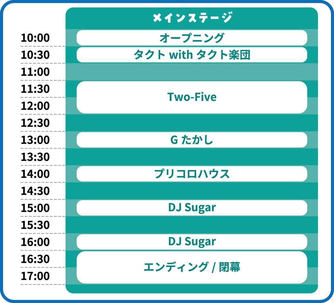- 音楽演奏等のステージパフォーマンスやお子様向けのものづくり・体験ワークショップを楽しめる!
