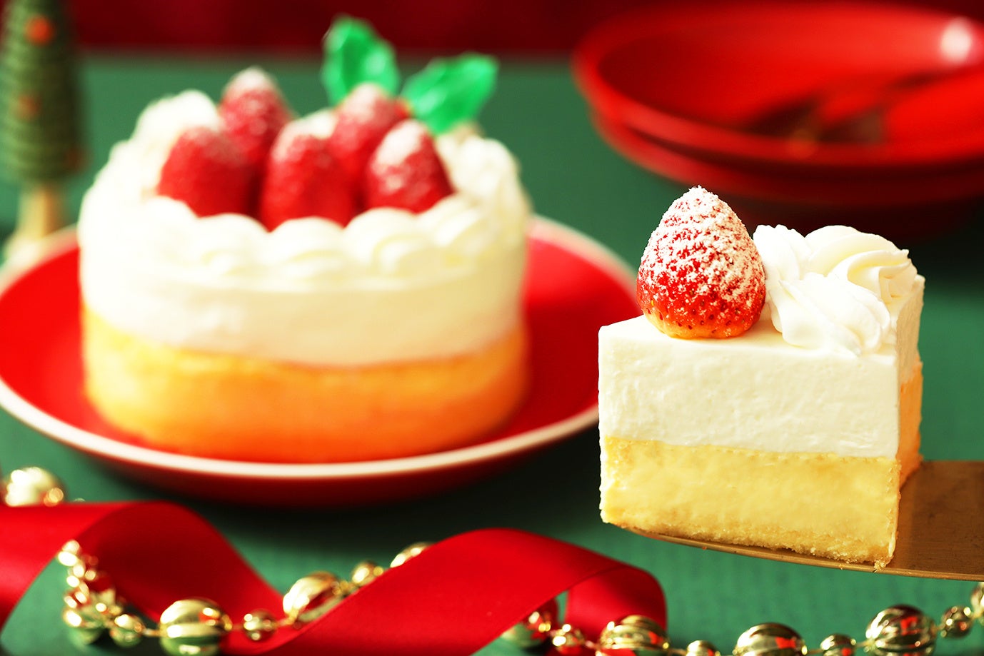 こだわり:クリームチーズを使用したベイクドチーズケーキにさっぱりとしたレアチーズを重ね、2層に仕上げました。ふんわり雪のようなホイップクリームといちごを飾った華やかなチーズケーキです。幅広い世代に愛される味わいで、ねこ好きさんやチーズケーキが好きな方にぴったりなクリスマスケーキです。昨年も大変ご好評をいただいたクリスマスシーズンの人気商品です。