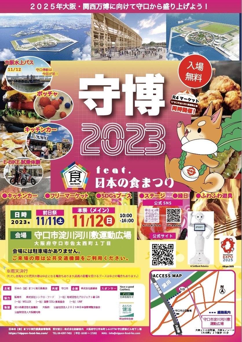 11/11(土)・12(日)開催!大阪・関西万博に向けて地元から大阪を盛り上げる「守口公民連携博覧会 守博2023 feat.日本の食まつり」