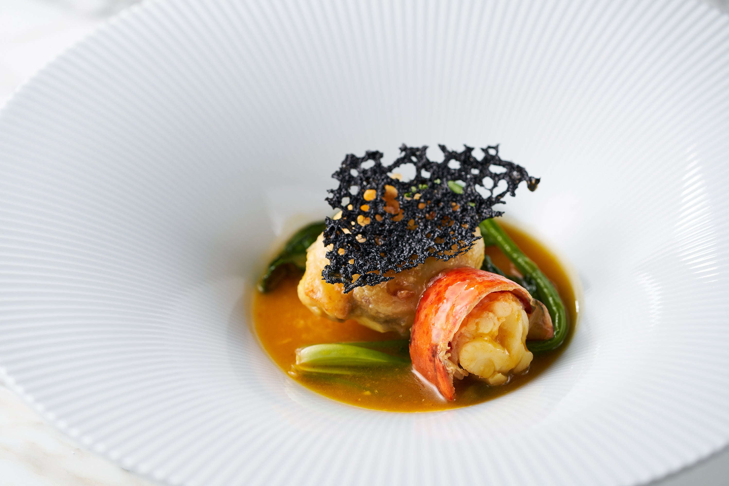 魚料理「海老芋/ほうれん草/アンコウ/オマール海老」