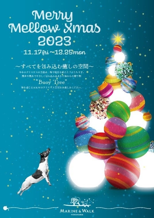 世界の海が抱える問題の漁業系廃棄物である「ブイ」と、世界第2位の汚染産業と言われるアパレル・繊維産業から出た「残布・残糸」をMARINE & WALKの施設コンセプトに重ね合わせたアップサイクルツリーです。可愛いだけではなく、真実の物語を語るのに相応しい素材で作り上げた世界に1つしかない「Buoy Tree」は、Merry Mellow Christmas2023の象徴となります。