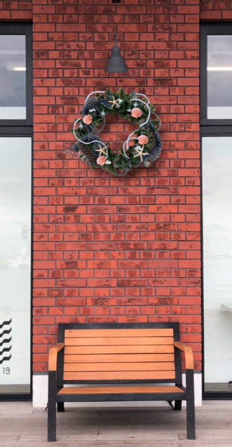 廃棄された漁網と組み合わせたクリスマスリースを施し、ゆったりとくつろげる癒しの空間を演出。