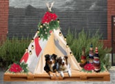 セイラーから譲り受けた廃棄予定の帆を使用したティピーに、クリスマスデコレーションを施し、ペットも楽しめるフォトスポットが登場。