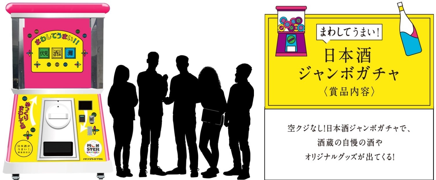 高さ2.4mのモンスターカプセルが登場。1回500円で灘と伏見自慢のプレミアムな日本酒や、酒蔵オリジナルグッズが当たります!日本酒の魅力をたっぷり味わいつくせる、まさに「まわしてうまい!」体験をお楽しみください。 |