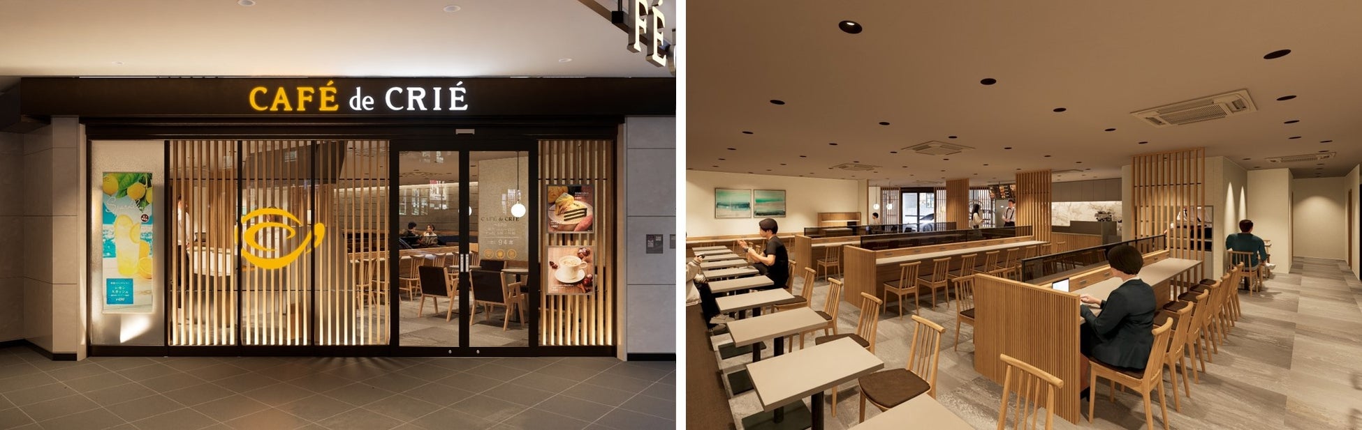 ▲『カフェ・ド・クリエ 南池袋店』 外観(左)/内観(右)イメージ