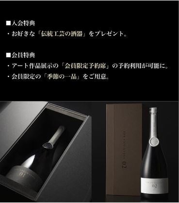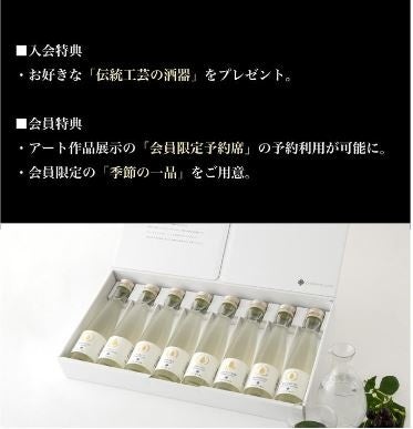 新店舗の先駆けとして会員を募集開始会員限定予約席の予約権利や伝統工芸の酒器、限定日本酒付の会員権を提供