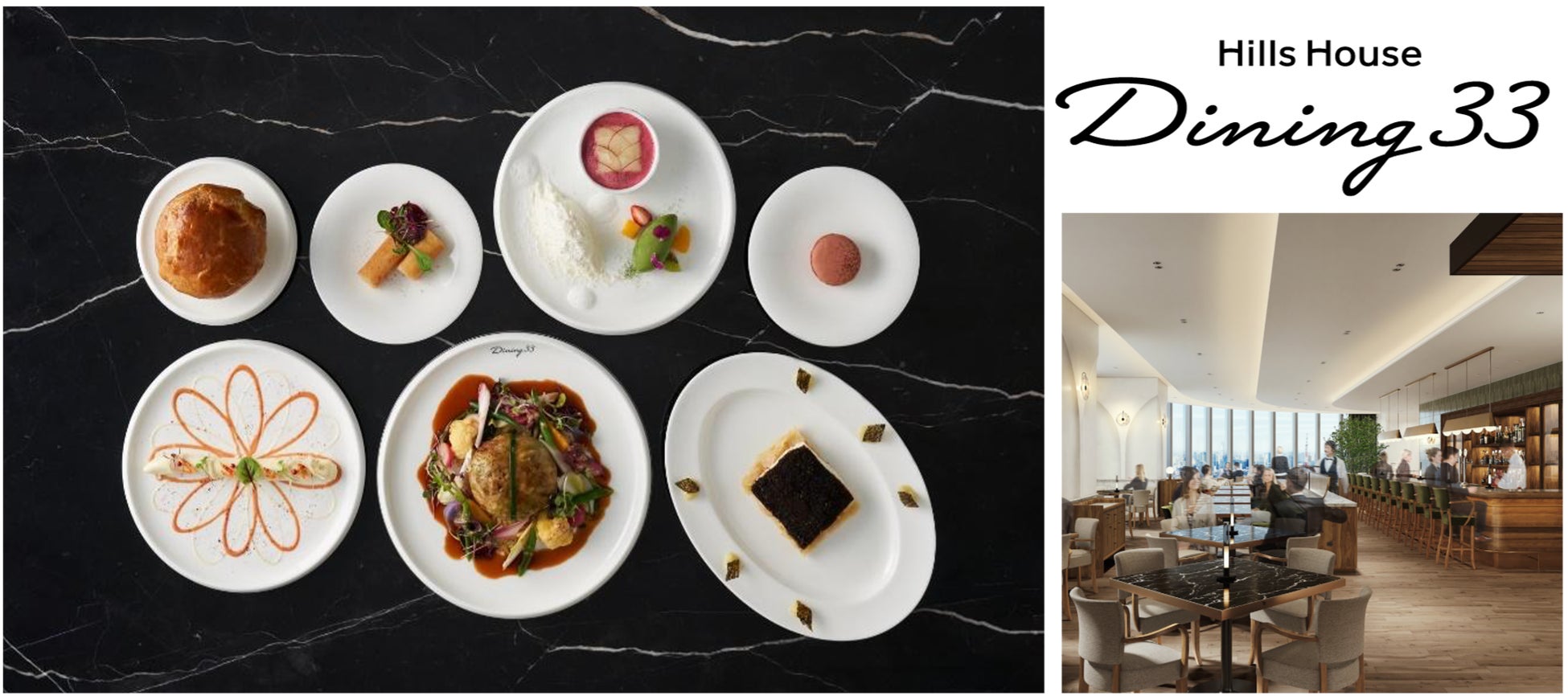 グランビストロ「Dining 33」は、入居企業とその従業員が、街全体をワークプレイスとして使うための拠点となる会員制ウェルビーイング施設「ヒルズハウス 麻布台」(麻布台ヒルズ 森JPタワー33・34階/面積約3,300㎡(約1,000坪))内にオープンします。「Dining 33」はヒルズハウスの会員でなくとも誰もが利用できるレストランで、日本が世界に誇るフランス料理の巨匠、三國清三氏がプロデュース。同氏の、これまでの栄えあるキャリアの中で築いてきた感性と創造力を受け継ぐとともに、同氏にとっても初の試みとなる大皿料理をシェアするスタイルで料理を提供します。訪れたお客さま同士の親密さを演出し、日常使いから懇親、接待まで、様々なシーンを彩る使いやすい空間で、和の思想を取り入れた料理と豊かな語らいの時間を満喫していただけます。また、併設する「Dining 33 Pâtisserie à la maison(ダイニング33 パティスリー ア・ラ・メゾン」では、華やかな生菓子のほか、“おもたせ”にも最適な焼菓子も販売します。