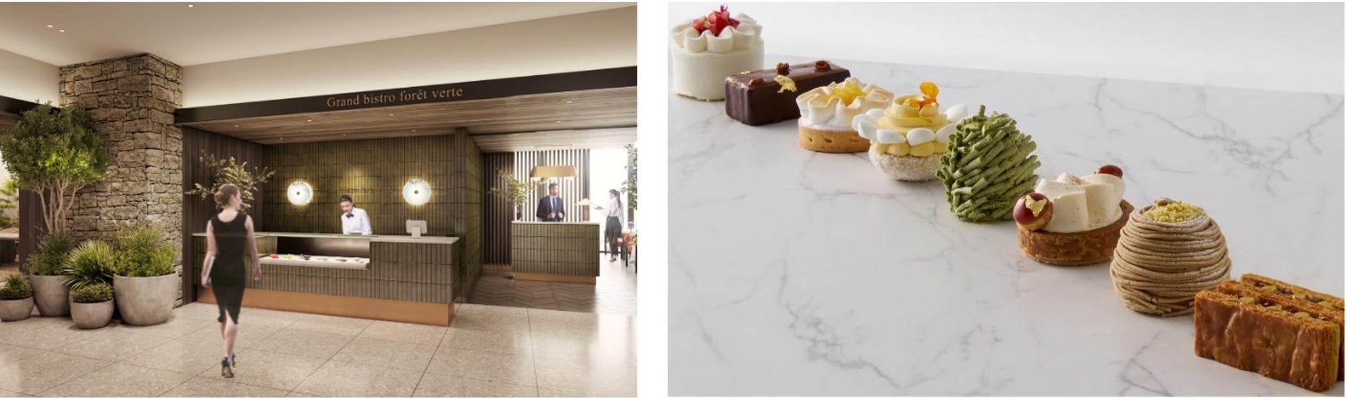 併設されるパティスリー「Dining 33 Pâtisserie à la maison」では、長年、四ツ谷の「オテル・ドゥ・ミクニ」(※)で三國清三氏を支え続けたシェフパティシエが腕をふるいます。“三國イズム”を知り抜いたセンスと技を駆使して、新たな場所にふさわしいスイーツを提供。ハレの日に嬉しい華やかな生菓子のほか、企業の「おもたせ」需要にもふさわしい焼菓子の数々をお楽しみいただくため、エレガントでありながら、東京の未来や自然への賛歌を表現するさまざまな美味しい工夫を凝らします。