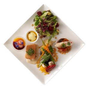 フランス料理の真髄とモダン東京の粋を感じさせるような多彩な料理展開がある一方で、三國氏がもう一つ、長年大切に推進し続けているウェルネスを意識した料理も、気軽にご堪能いただけます。病院食や食育のジャンルでも功績を残している三國氏の知見を生かし、ヘルシーでありながら十分な満足感も得られる料理がワンプレートに美しく盛られた「メニュー・マンスール」はその象徴的な存在。ぜひお試しください。