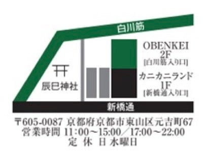 所在地:〒605-087 京都府京都市東山区元吉町67 2F (新橋通入口)